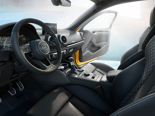 Parce qu’un compact sportif se devait d’avoir plusieurs atouts, Audi a fait le maximum pour la couleur avec l’A3. Pour le style, elle propose jusqu’à 8 variantes de couleur métallisées au choix et disponible en couleurs unies et bleu Arat Cristal. Ses jantes en alu coulé se démarquent aussi bien avec un modèle à phare LED ou à phare Xenon plus. Et c’est en option pour l’extérieur que ce sportif tente de séduire : assistant de feux de route pour les phares, boulons de roue avec écrou antivol, système OPENsky pour le toit ouvrant, etc. L’intérieur offre toujours plus de confort avec les sièges de sport plus esthétiques, et avec un toucher agréable et un style sportif, le volant de cette voiture est aussi tout simplement parfait.