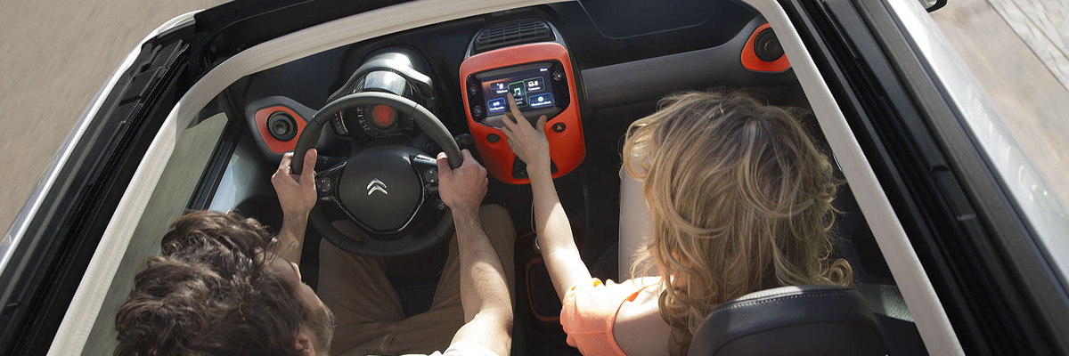 Citroën C1, c’est un toit en toile souple coulissant et aux dimensions exceptionnelles (l 800 mm x L 760 mm). Simple d’utilisation, l’ouverture se commande électriquement… Prenez l’air d’une simple pression ! La version Airscape de Citroën C1 adopte, elle aussi, l’effet bi-ton qui offre la possibilité de choisir une couleur de toile contrastée (Sunrise Red, Night Blue ou Black) par rapport à la teinte du véhicule pour des combinaisons colorées et optimistes… Il y a forcément une Citroën C1 qui vous ressemble !