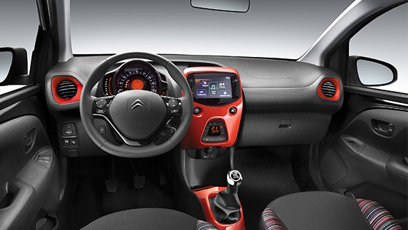 Enjouée à l’extérieur comme à l’intérieur de la citadine ! Citroën C1 dispose d’une planche de bord épurée agrémentée de touches de couleurs attrayantes qui teintent la façade multimédia, les enjoliveurs d’aérateurs et l’embase du levier de vitesses. De l’habitacle se dégage une ambiance gaie et résolument optimiste avec des garnissages de couleurs vives pour habiller les assises : Tissu Wave Light Grey, Tissu Zebra Red et Tissu Square Blue. Un cuir grainé Black est également disponible sur la finition Shine.