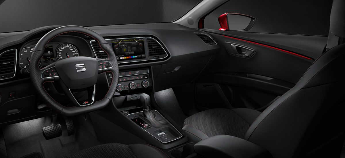 Un habitacle au volume généreux se remarque immédiatement dès l’ouverture de la porte de cette Nouvelle Leon 5 portes. Les yeux se rivent ensuite sur l’agencement parfait de la console centrale avec éclairage LED ainsi que le tableau de bord orienté conducteur. On ne peut que déduire la facilité d’accès des fonctionnalités exceptionnelles de cette Seat à travers cet emplacement soigneusement étudié. La touche de raffinement se remarque via la sellerie de qualité. A cette option, le constructeur laisse à chacun le libre choix de peauffiner à sa façon cet intérieur en proposant un large choix de selleries. Chaque finition a déjà d’ailleurs sa particularité en matière chic comme XCELLENCE qui séduit par ses détails chromés et autres touches finales. Pour FR, c’est tout simplement la combinaison du volant en cuir et la sellerie de haute qualité qui fascine.