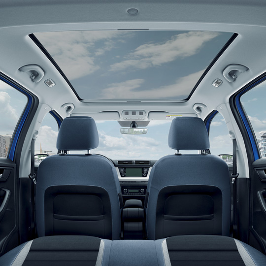 Pour rester fidèle au style ŠKODA , la FABIA mise sur un total look moderne se manifestant surtout par des formes géométriques claires. C’est le cas pour son capot savamment travaillé sur lequel s’affiche le logo argenté de la marque ainsi que sur sa calandre. Elle adopte une ceinture de caisse plus prononcée pour confirmer son tempérament. L’horizontalité des lignes de cette citadine, visible parfaitement à l’avant comme à l’arrière, lui confère une belle allure ainsi que du dynamisme. De plus, cet élément laisse paraitre le sentiment d’espace ressenti à l’intérieur. Ceux qui aiment la magie vont pouvoir s’amuser avec la FABIA en la customisant, côté couleur de la carrosserie, jantes et toit grâce à l’option « Colour Concept ».