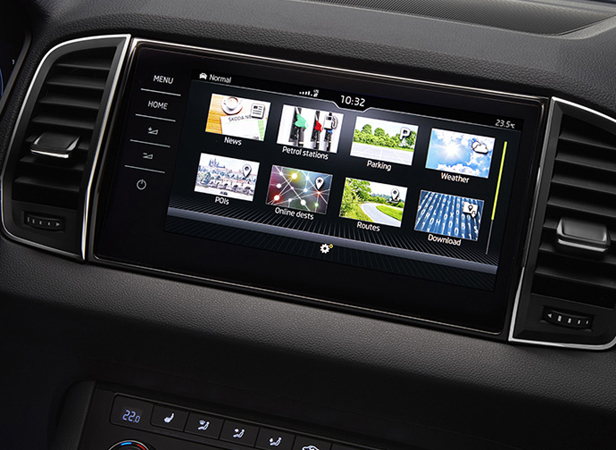 Le modèle ŠKODA KAROQ jouit d’un espace exceptionnel d’habitacle. Embarquant de nombreux systèmes d’aide à la conduite, il sera la 1 ère voiture de la marque avec un instrument entièrement digitale. Il propose un niveau de modularité appréciable mais c’est surtout au niveau de la technologie high tech que ce SUV fait fort. Volants et sièges avant/arrière chauffants, chargeur de téléphone par induction, suspension pilotée avec 3 modes de conduite, voilà quelques surprises que le KAROQ réserve aux routiers invétérés. Il fascinera aussi par son système multimédia « Colombus » avec des commandes sensitives. Reposant sur un écran tactile capacitif de 9,2 pouces, celui-ci présente plusieurs fonctionnalités intéressantes, entre autres des applications en ligne et un accès Wifi.