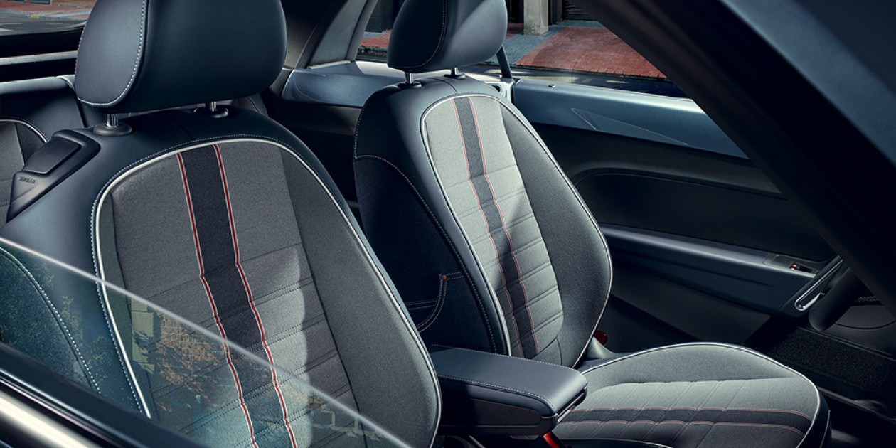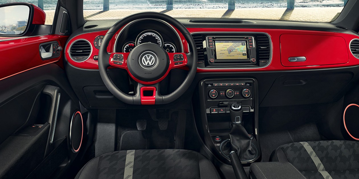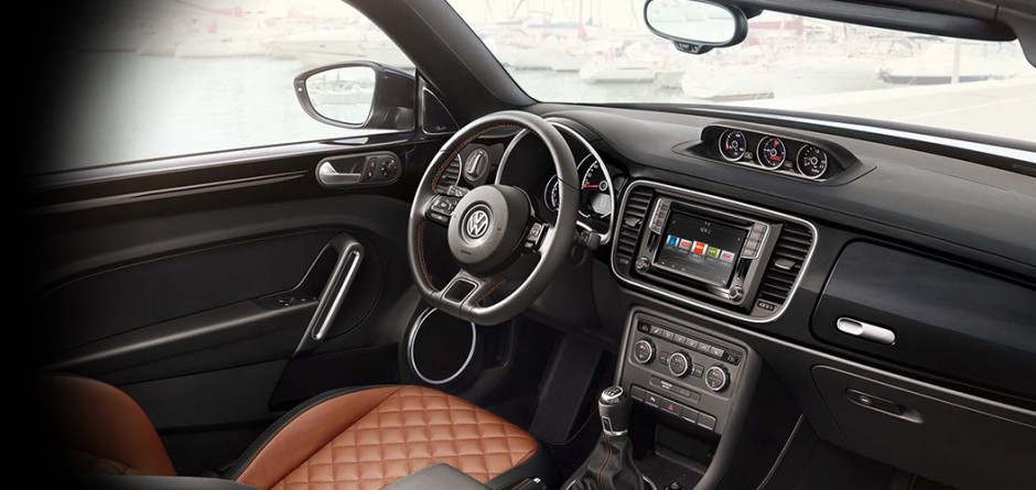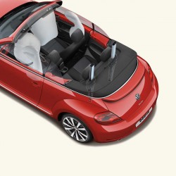 Avec un bandeau rappelant la couleur de la carrosserie, la planche de bord sur la devancière, avec sa boite à gants, évoque la Coccinelle à ses débuts. C’est au niveau des commandes que Volkswagen a décidé de rompre avec le passé puisqu’elles se sont modernisées avec cette gamme. Pour le confort, ce cabriolet offre le nécessaire avec ses sièges en cuir qui promettent aisance sur route et bon maintien. Il faut chercher parmi les différentes finitions pour un niveau de confortabilité élevé et davantage de sécurité. Design propose, par exemple, des airbags frontaux conducteur et passager ainsi que des airbags latéraux. Pour la touche de luxe, les applications décoratives sur le volant, le tableau de bord et contre-portes dans la teinte de la carrosserie sont joli à voir. Les sièges avant confort avec réglage lombaire sont aussi un petit plus. Avec la série spéciale « Denim », le conducteur sera comblé avec le volant spécifique ‘’Dénim’’. ‘’Dune’’ et la série exclusive ‘’Spéciale Couture’’ promettent également des changements intéressants.