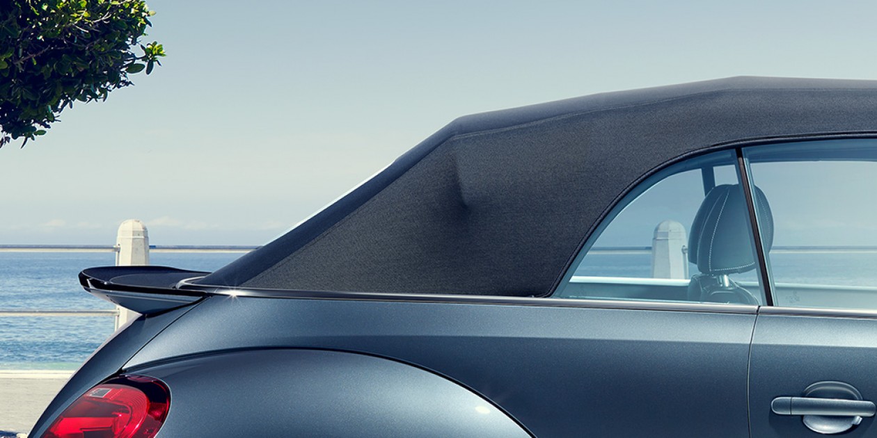 Rondouillarde pour rester fidèle à ses ancêtres, la nouvelle gamme Coccinelle Cabriolet affiche pourtant un air modernisé en adoptant de nouveaux coloris. Avec les boucliers retravaillés, elle a adopté des ailes apparentes galbées, des jantes enjoliveurs chromés et des phares ronds et une amorce de marchepied, non sans rappeler les Coccinelles d’autrefois. Les nostalgiques peuvent pourtant lui reprocher ses grands pas vers la modernité ressentis à travers son aileron mais aussi ses feux arrière et antibrouillards à l’aspect plutôt fun. Toutefois, certaines modifications ont fait du bien à l’aspect de cette voiture comme son entrée d’air centrale retouchée. Devenue plus élargie et encadrée par des baguettes dans la même couleur que la carrosserie, elle donne l’impression d’une Coccinnelle plus imposante.