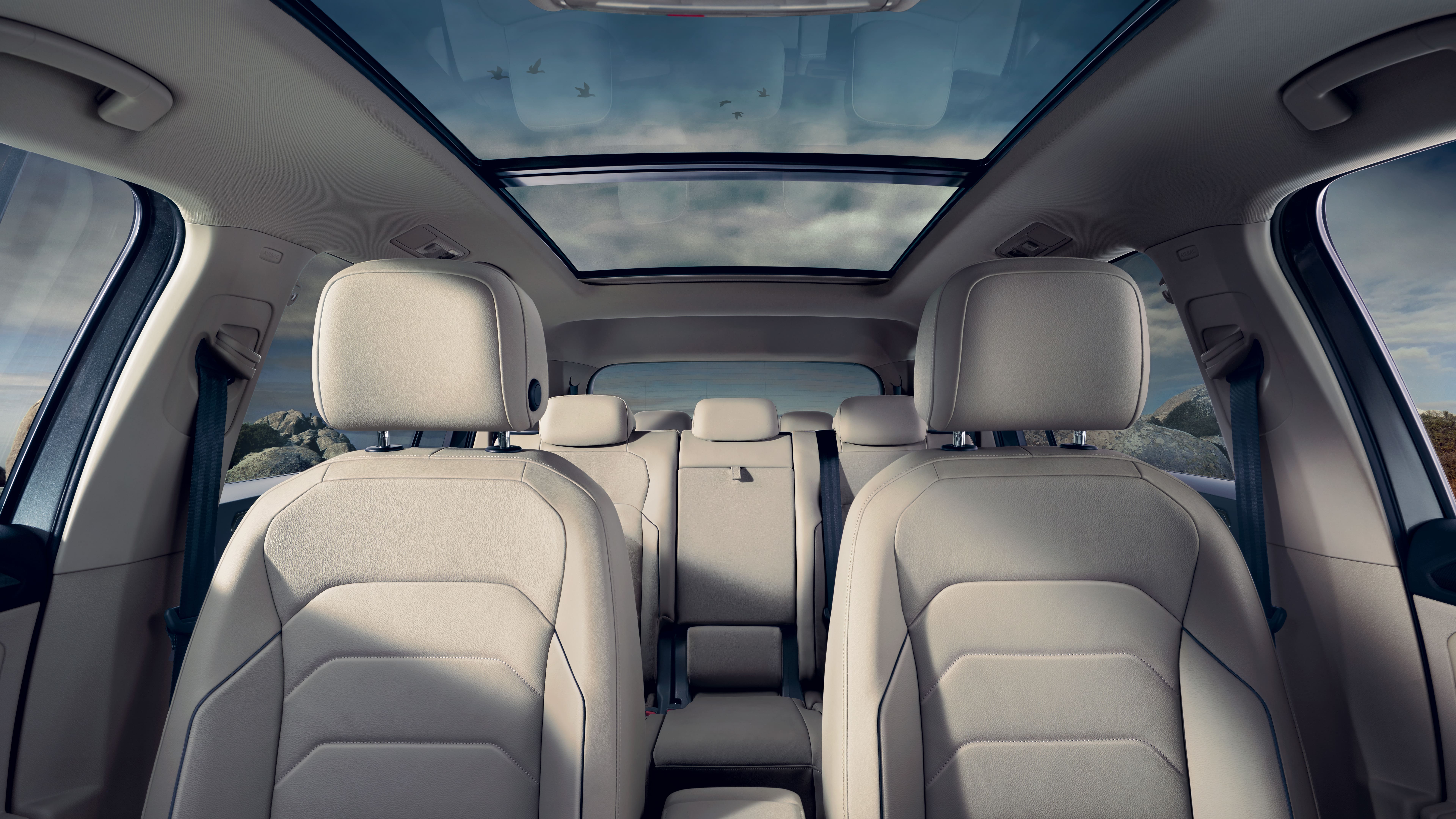 Toutes les finitions disponibles pour ce Tiguan Allspace mettent à l’honneur le raffinement à travers des sièges ergonomiques et esthétiques et des finitions décoratives. Confortline séduit avec l’habillage en cuir Vienna, en option, et par le tissu Lasano tandis que Trendline promet du luxe avec le revêtement Rhombus. Pour Carat, la sellerie Mircofleece ArtVelours va épater les plus exigeants. Au niveau de l’habitacle, le confort se ressent jusque dans les moindres recoins de cette Volkswagen qui peut accueillir jusqu’à 7 adultes. Le design intérieur a été conçu de manière à permettre un usage flexible. La 2 nde rangée de sièges propose un espace aux jambes important. Optimisant le sentiment d’espace, le toit panoramique inclinable et coulissant permet d’admirer le paysage avec aisance à chaque trajet. Embarquant tous les nécessaires pour de la connectivité, notamment un système multimédia composé d’un grand écran couleur tactile de 5’’, cette nouvelle génération de Tiguan profite également des technologies innovantes en matière d’assistance à la conduite.