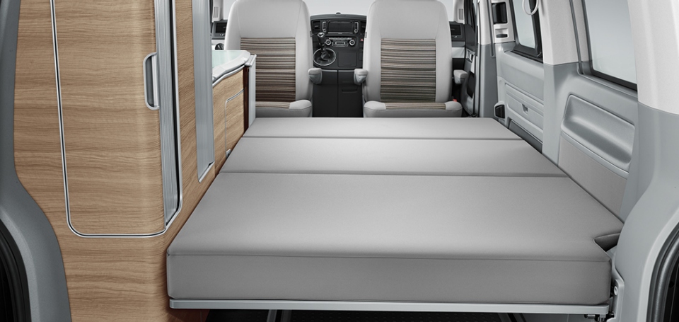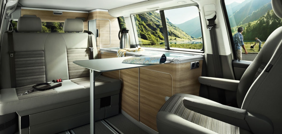 Vu depuis l’extérieur, le California affiche une silhouette imposante qui laisse imaginer un intérieur spacieux. Derrière ses dimensions généreuses, il dispose de tous les nécessaires pour un voyage réussi dont une kitchenette fonctionnelle, 4 couchages confortables ainsi qu’un système multimédia innovant. Les finitions disponibles pour cette gamme respirent l’aventure à travers un design polyvalent et moderne. De plus, leurs noms évoquent déjà une vocation pour le voyage car effectivement, le California se décline en 4 versions dont Beach, Ocean, Edition et Coast. La série Edition séduit ainsi par sa sportivité apparente. Plusieurs éléments noirs, dont les coques de rétroviseurs extérieurs, viennent compléter l’élégance des peintures soigneusement choisies pour le California Edition. Cette version se trône sur un ensemble formé par des jantes alliage 18’’ « Tonica » et des pneus robustes. Pour cultiver un look mystérieux, Edition jouit d’un vitrage surteinté « Privacy ».